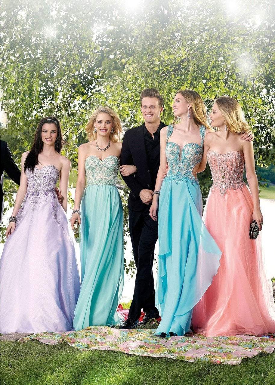 Fun and flirty, this strapless long gown has a fully beaded bodice with a sweetheart neckline and flowy chiffon bottom.