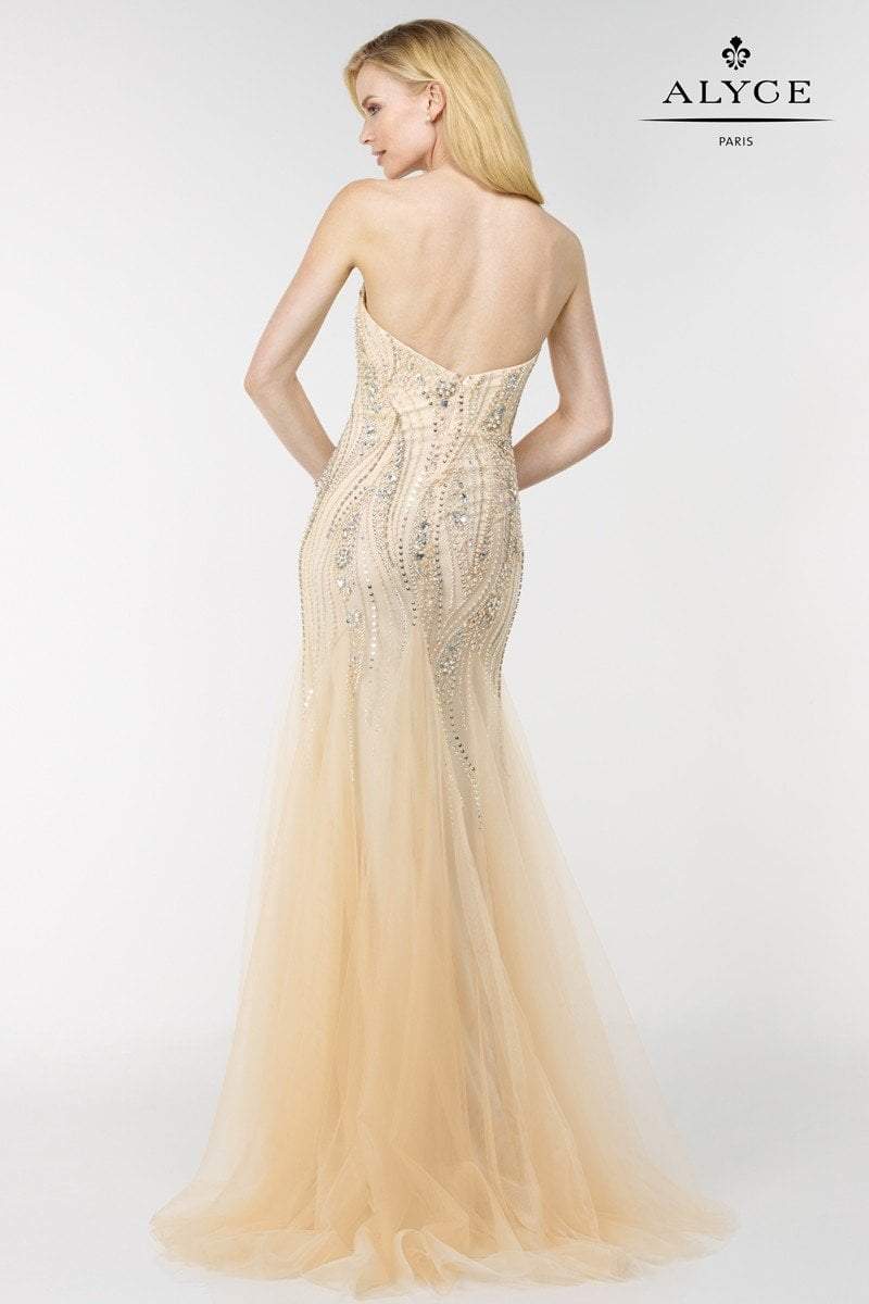 Rock your curves in this sweetheart mermaid style dress with rows of jewels and gems.