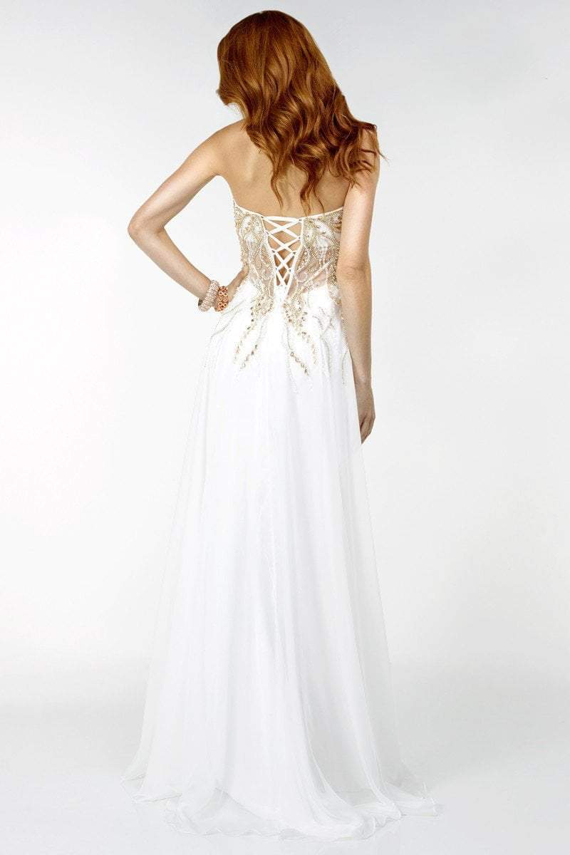 Spend your night in this out of the world strapless chiffon dress with a detailed beading pattern.