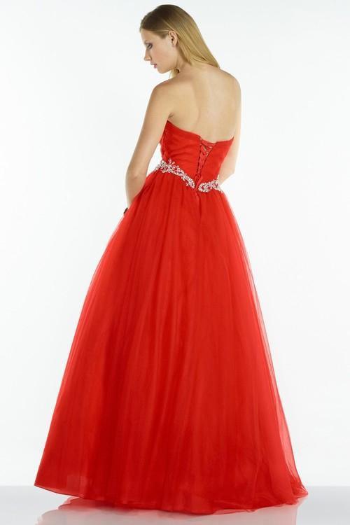 Stand out in this strapless ball dress with a corset back and an exquisite sequin waistband.