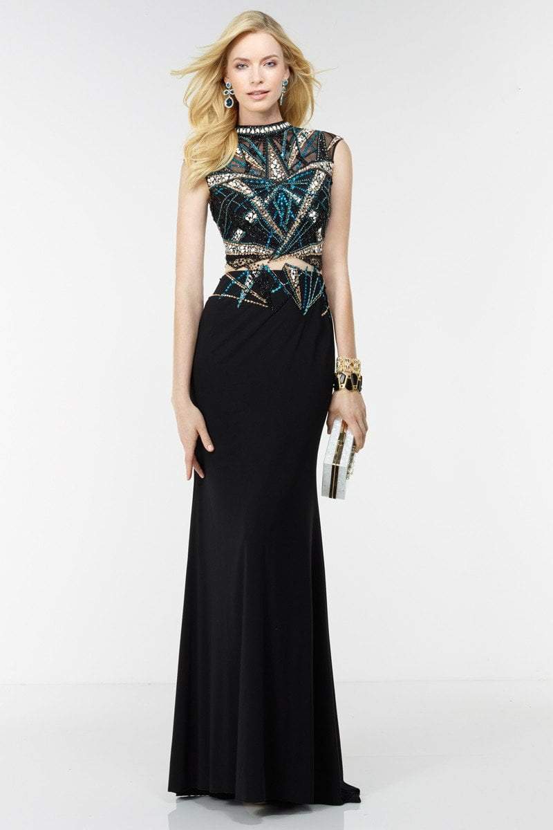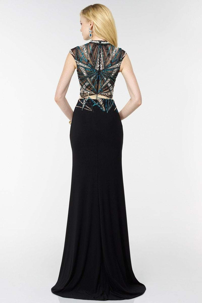 You will look smashing in this dress which features a fully sequin bodice, high neckline, short sleeves, and a back zipper.