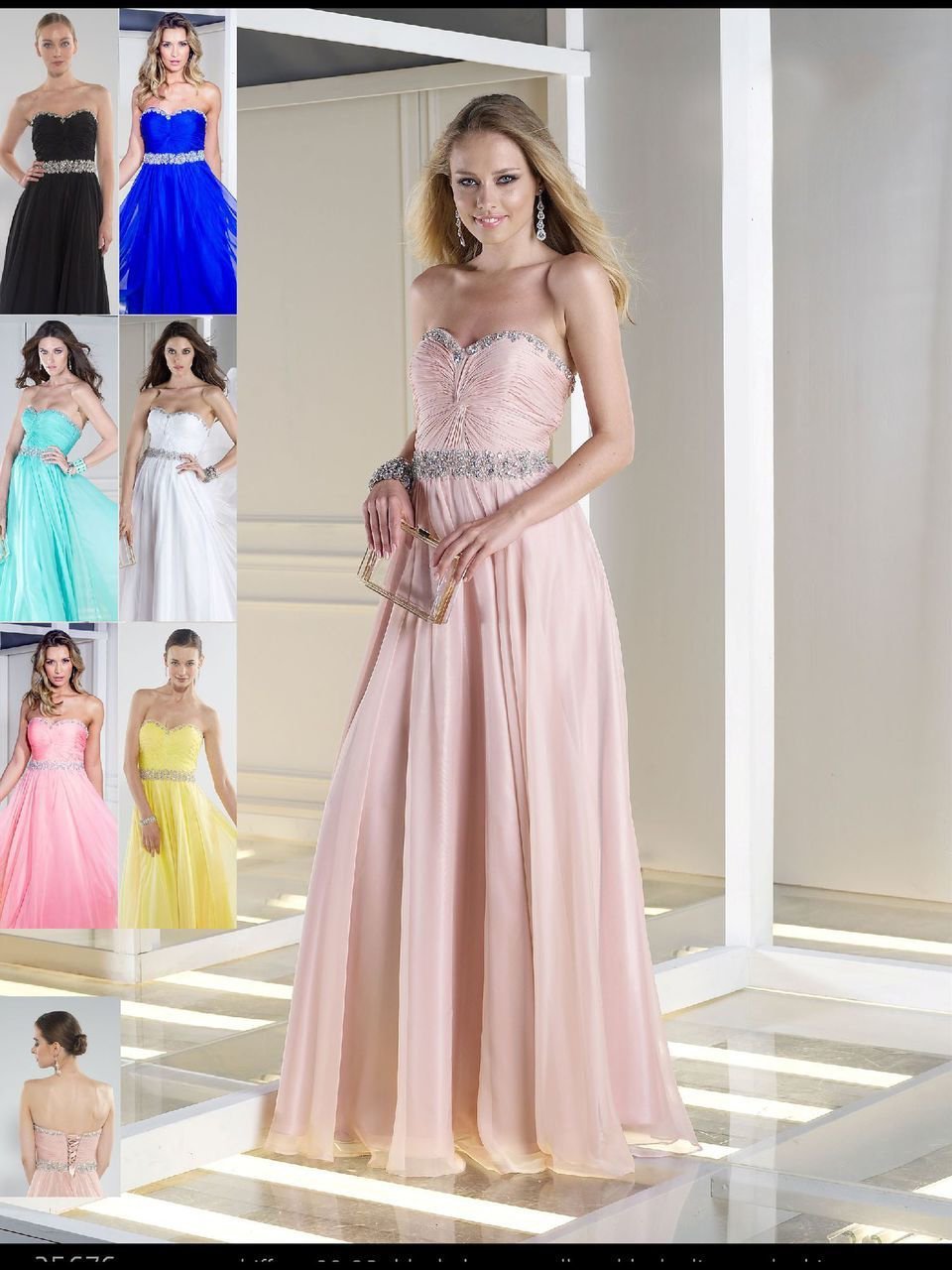 Glittering metallic beadwork borders the ruched bodice of Alyce Paris B Dazzle 35676 prom dress, outlining the strapless sweetheart neckline while a matching band encircles the natural waist. The knotted bodice draws a slimmer figure, enhanced by the laced-up back. Beneath, the soft chiffon plummets onto the ground with a fabulous swirl.