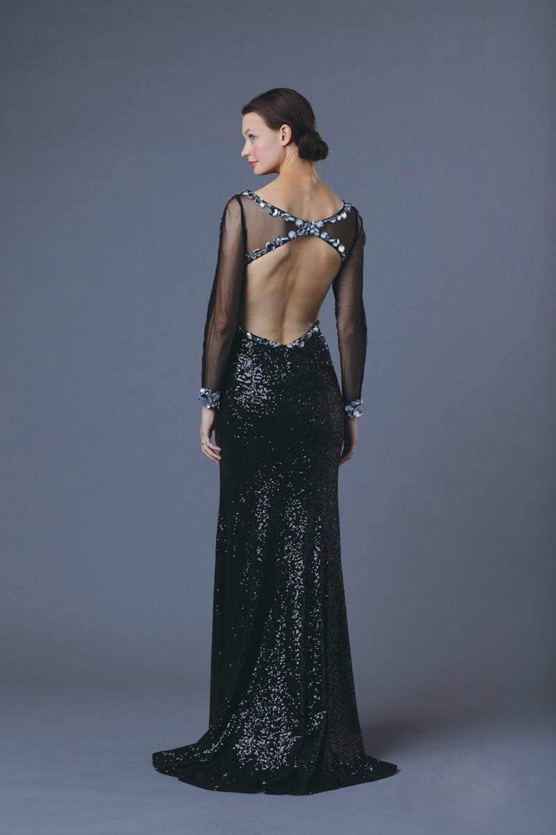 Be a classic beauty in Alyce Claudine Collection 2295. This amazing evening gown showcases a bateau neckline with full sleeves. Chunky beads topped off the neckline and cuff sleeves. Keyhole open back with sheer styling for added flair.Sparking sequins stitched all over the bodice. The side slit ends a small train.