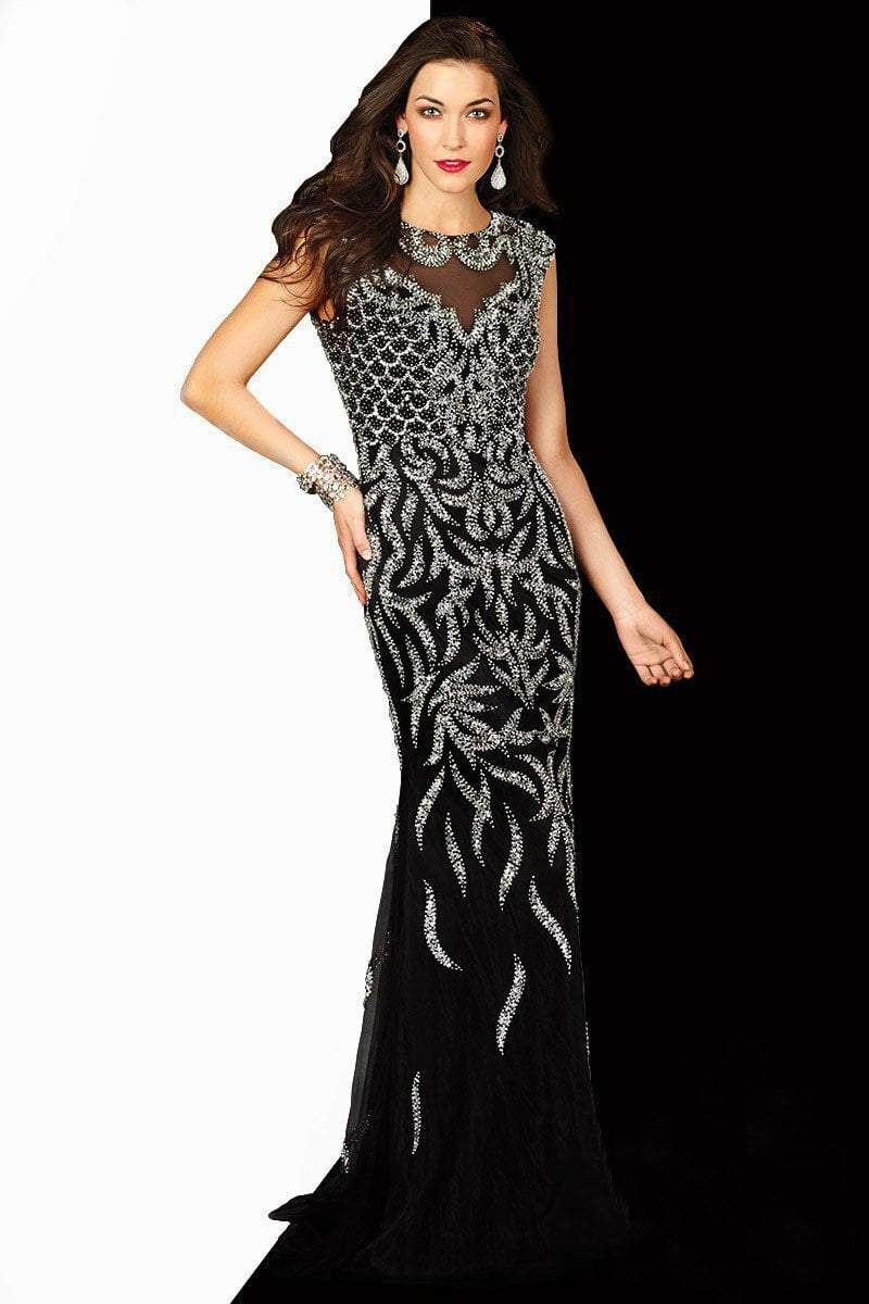 Shine bright in this fully beaded tulle sleeveless gown with stunning intricate beaded illusion neckline, with graduated beading down the bottom. Features a keyhole back. Great for prom, special occasion, or formal event!