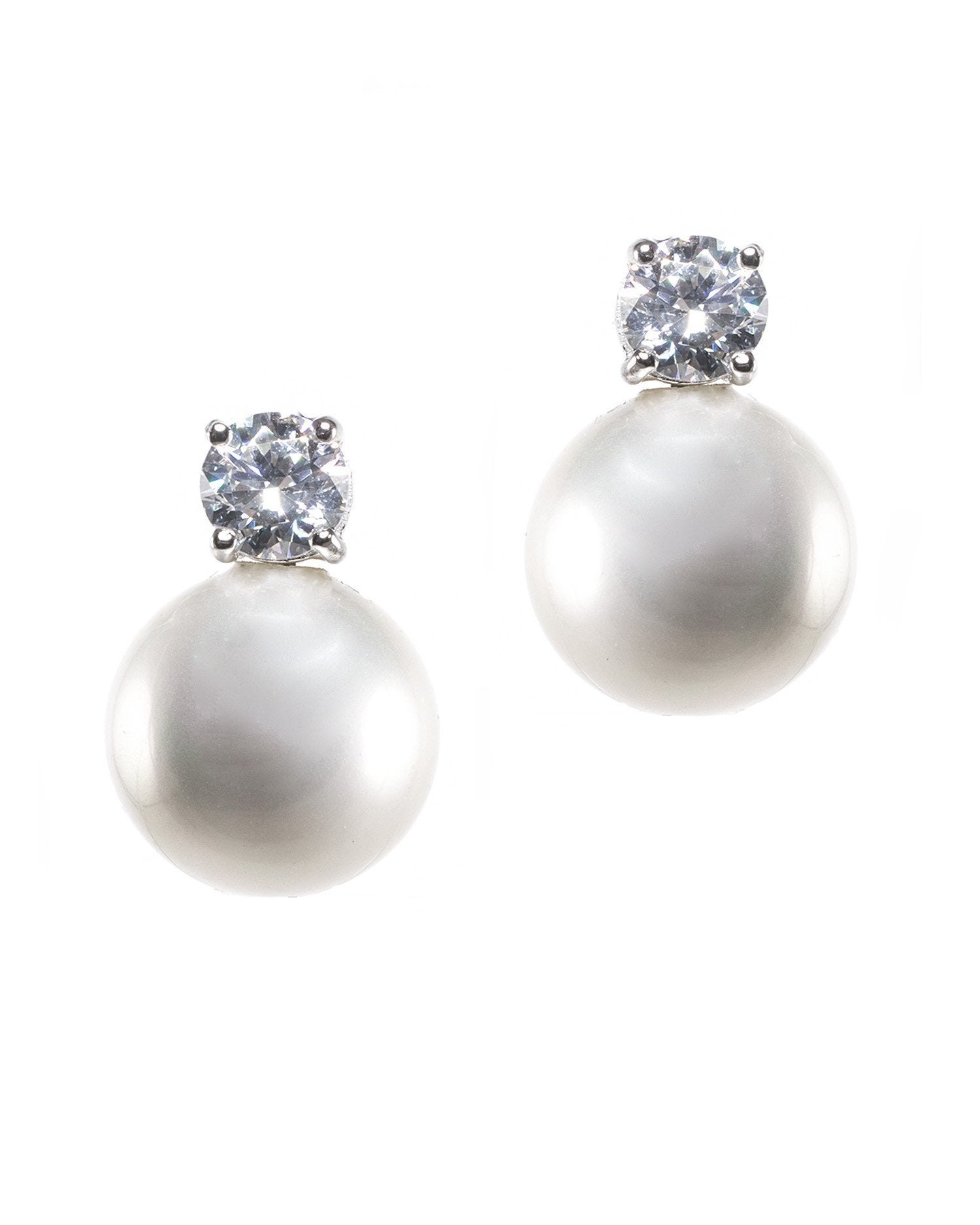 Traditional and classic Sterling silver clip earring featuring a shell pearl topped off with a shimmering diamond simulant.