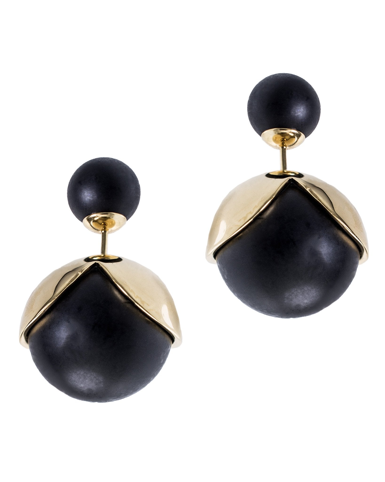 Seen on the runways and red carpets around the world, this pierced tribal earring is made of 18k gold vermeil and shimmering shell pearls with a platinum finish. This updated version has a classic lotus peal framing the pearl. Each pearl is capped in Sterling silver.