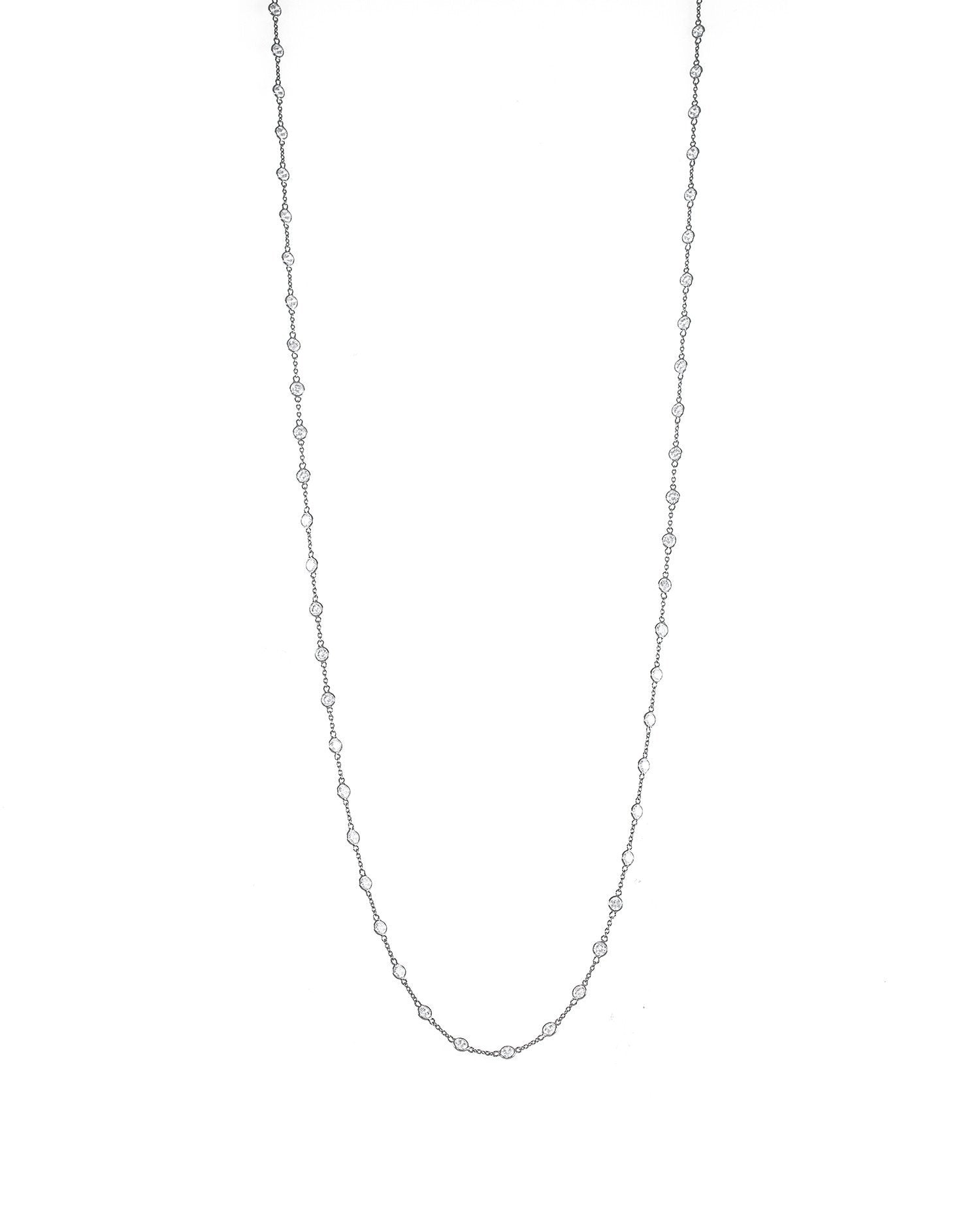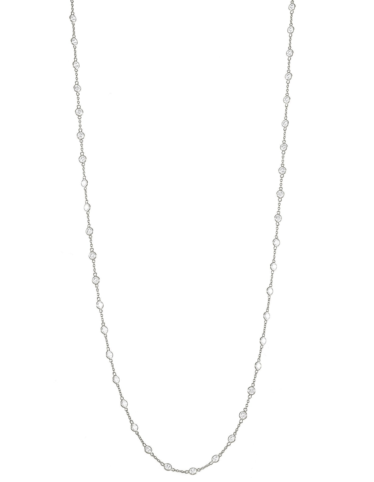 This diamond simulant wrap necklace is 60" of hand pulled Sterling Silver encasing the finest hand cut and hand set diamond simulant.