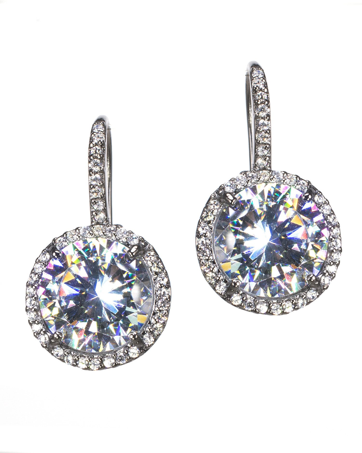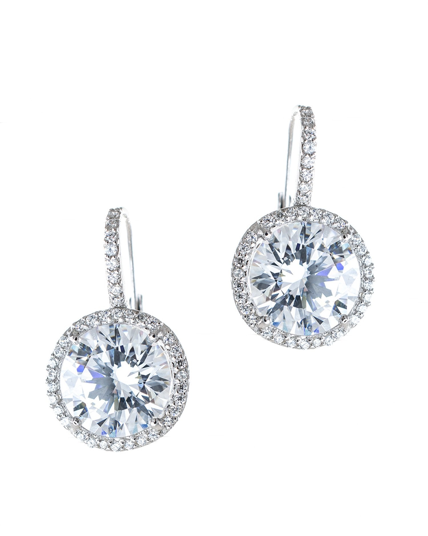 Sterling Silver statement halo pierced earrings. These antique looking french lever backs set with the finest diamond simulants are sure to turn a few heads.