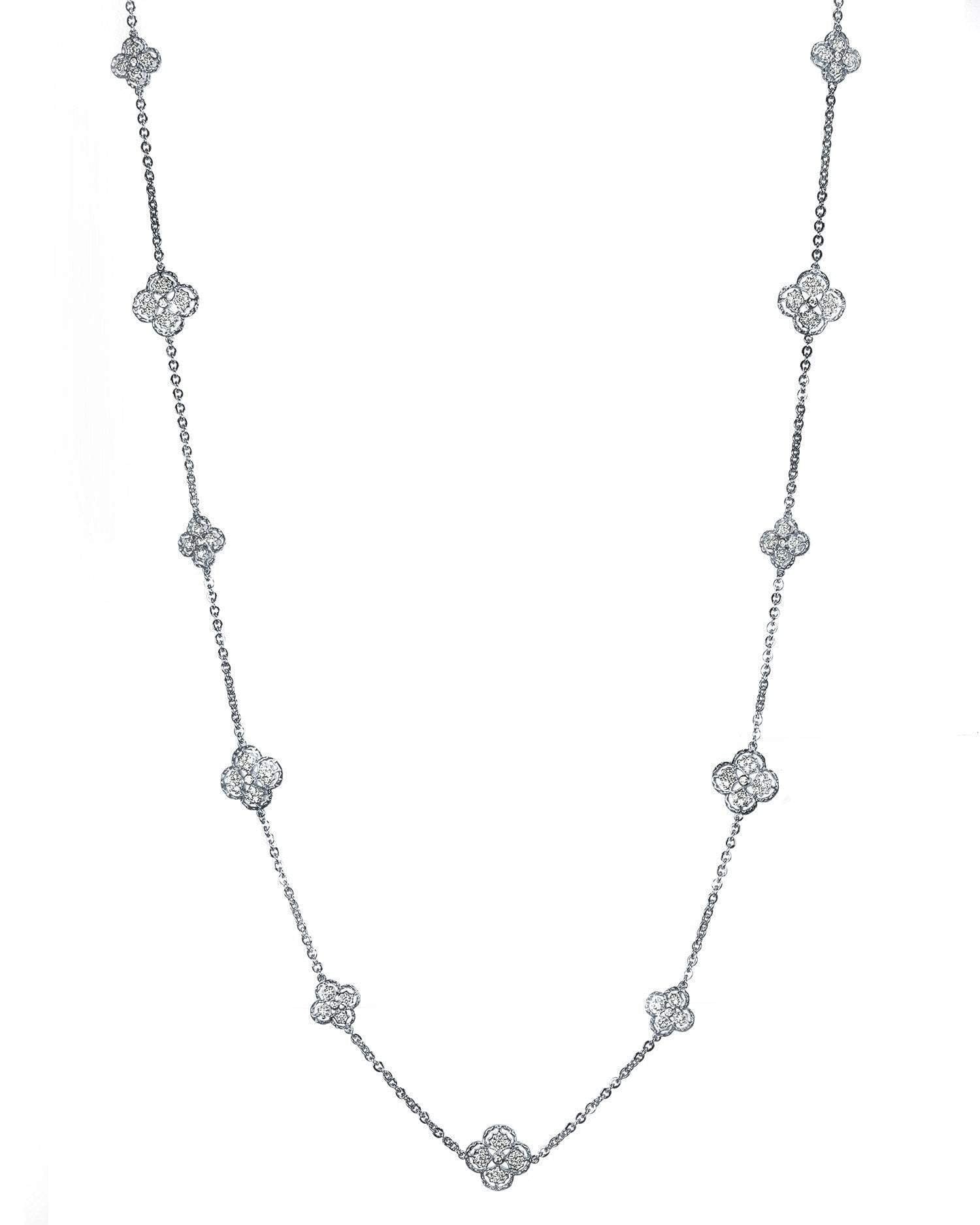 Two sizes, in an alternating pattern of the Romantic Lace Clovers make for an easy to wear layering necklace. The center of each clover leaf is hand set using the finest diamond simulants