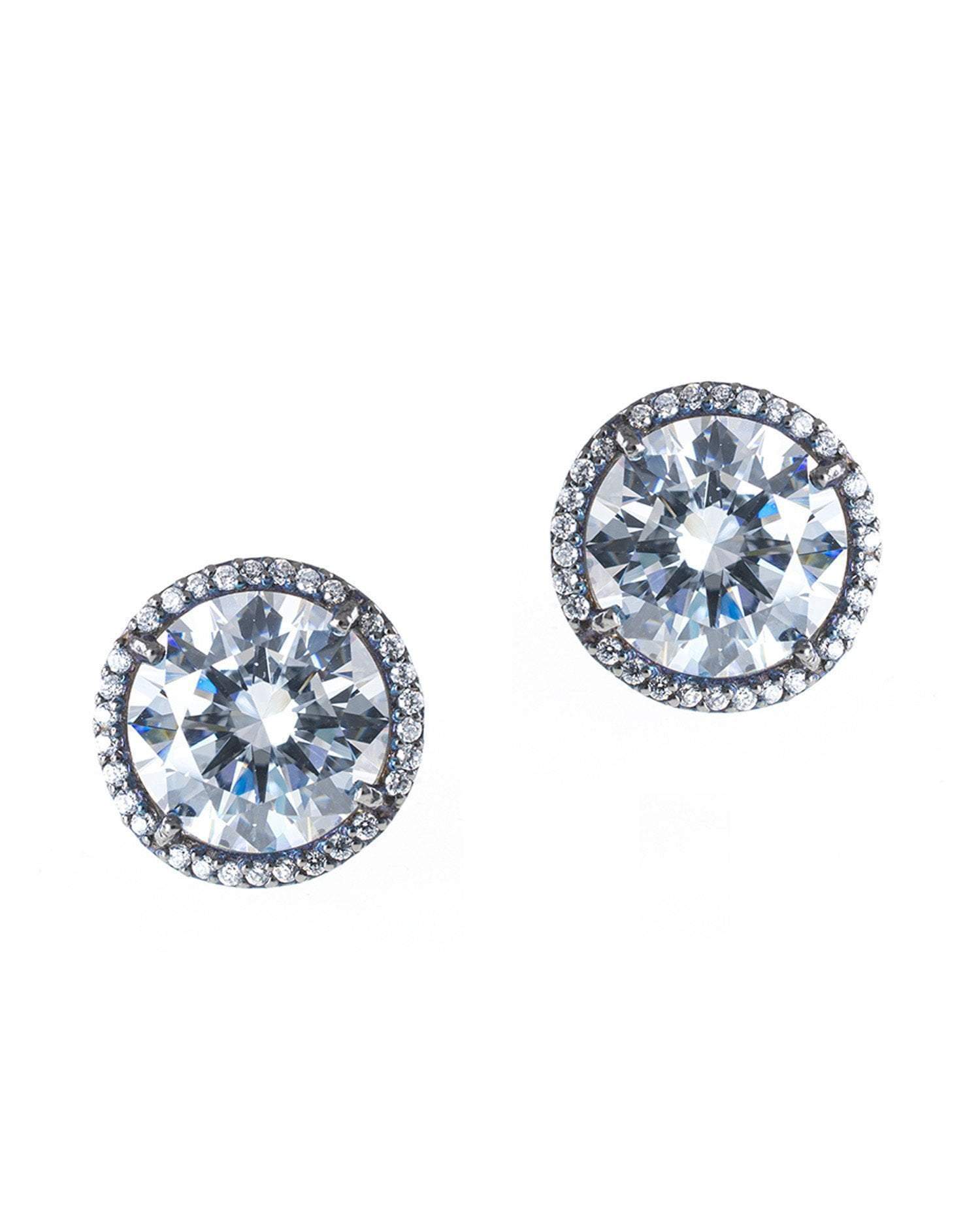 Sterling Silver statement halo pierced stud featuring the finest hand cut and hand set diamond simulant. A showstopper.