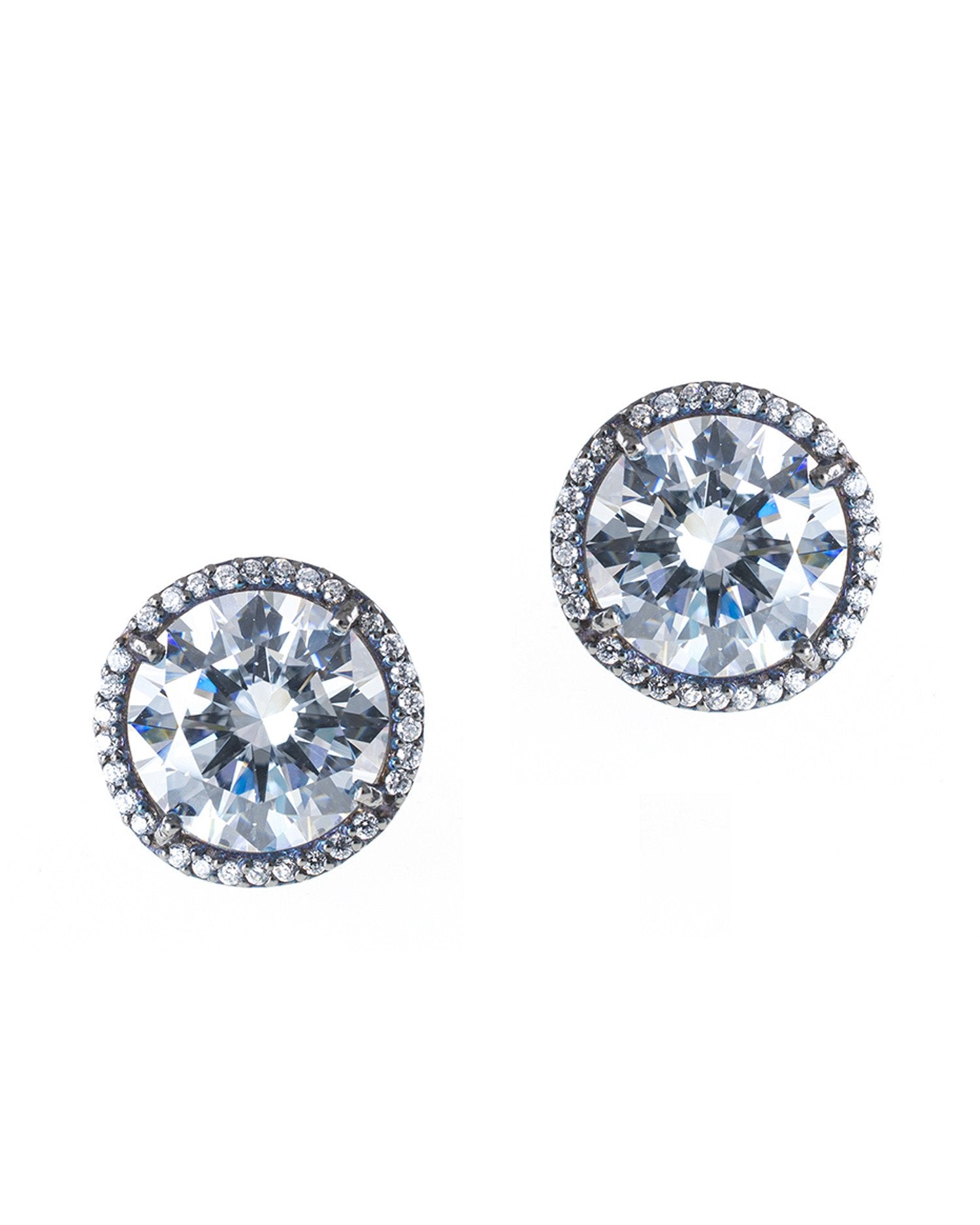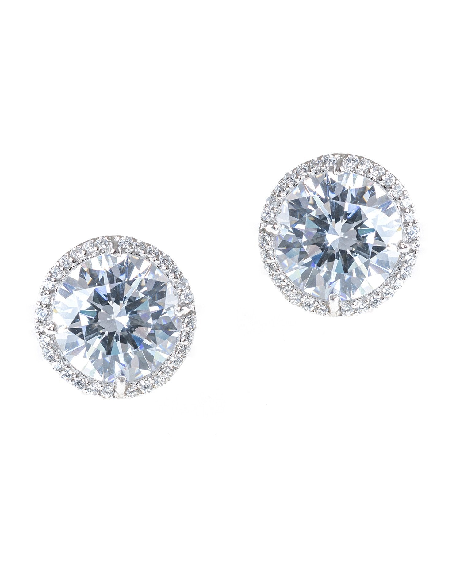 Sterling Silver statement halo pierced stud featuring the finest hand cut and hand set diamond simulant. A showstopper.