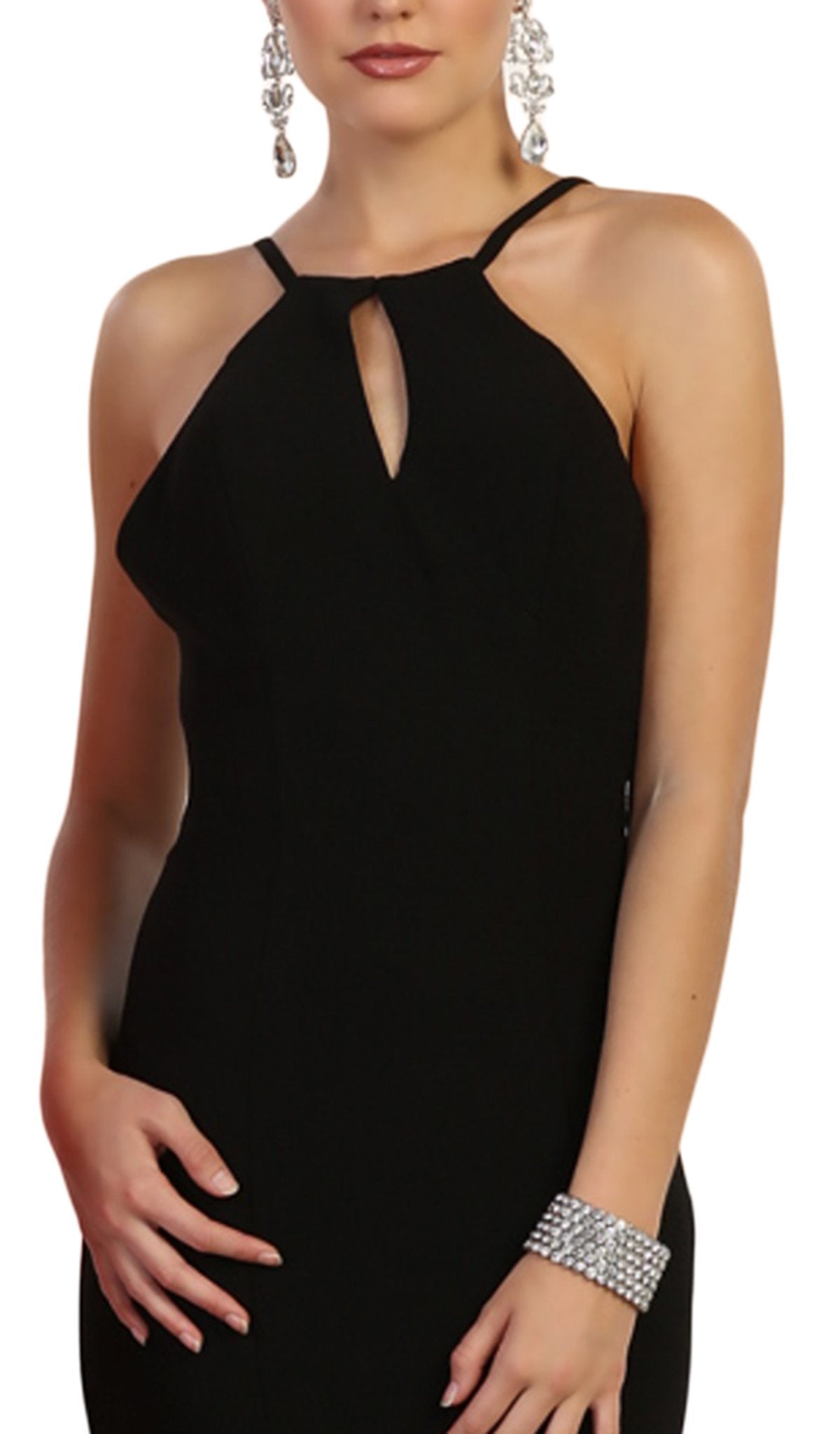 Embrace a sophisticated sensibility without sacrificing allure in this May Queen MQ1578 creation. Sculpted with seams to create a cut-in design while accenting a keyhole cutout, this chic piece presents a halter neckline and a crisscross-strapped open back. The trumpet skirt shows a tailored cut that skims over the hips and ends in a wide flaring flourish and a sweep train. Reveal a tasteful style as all eyes gravitate towards you in this May Queen masterpiece.