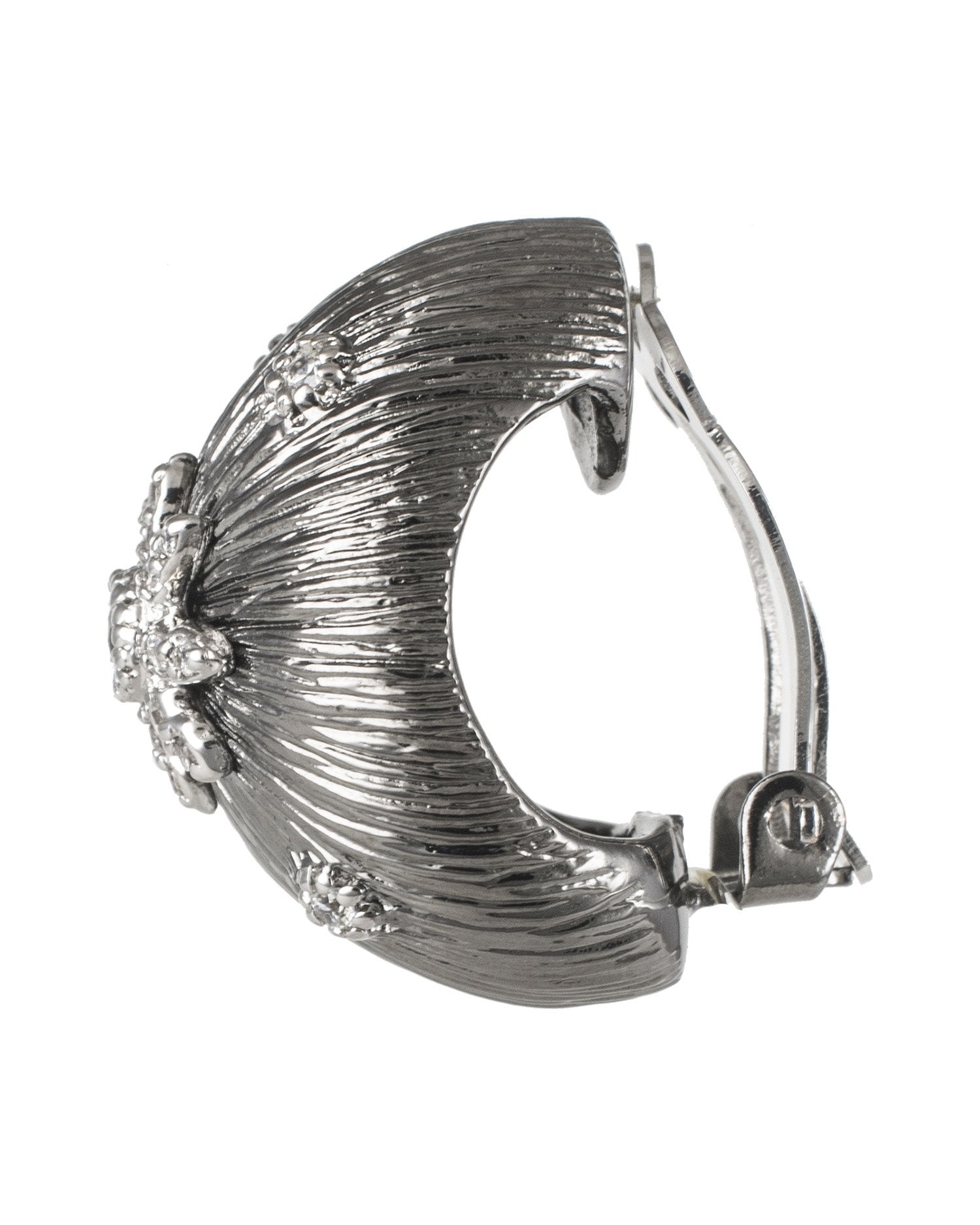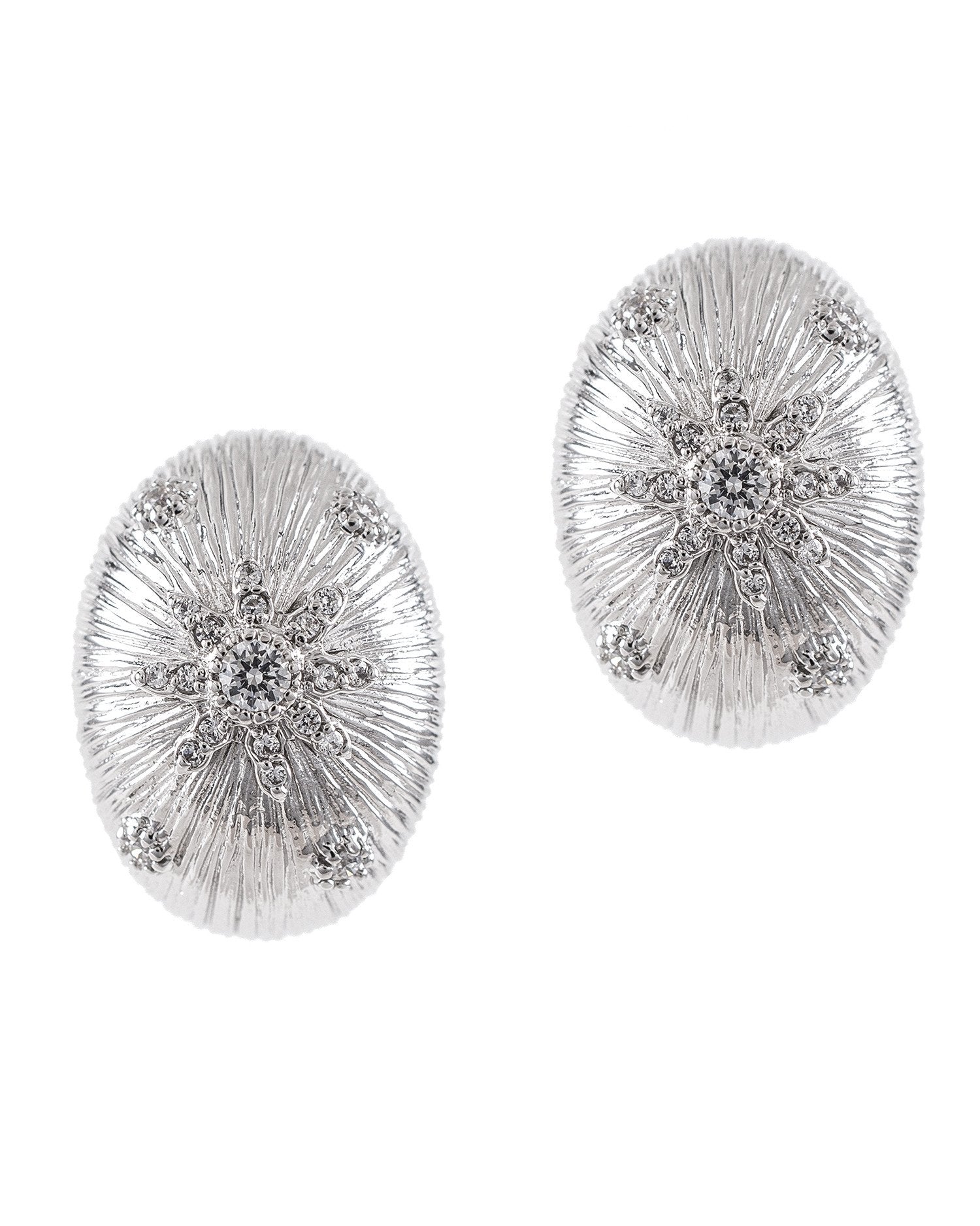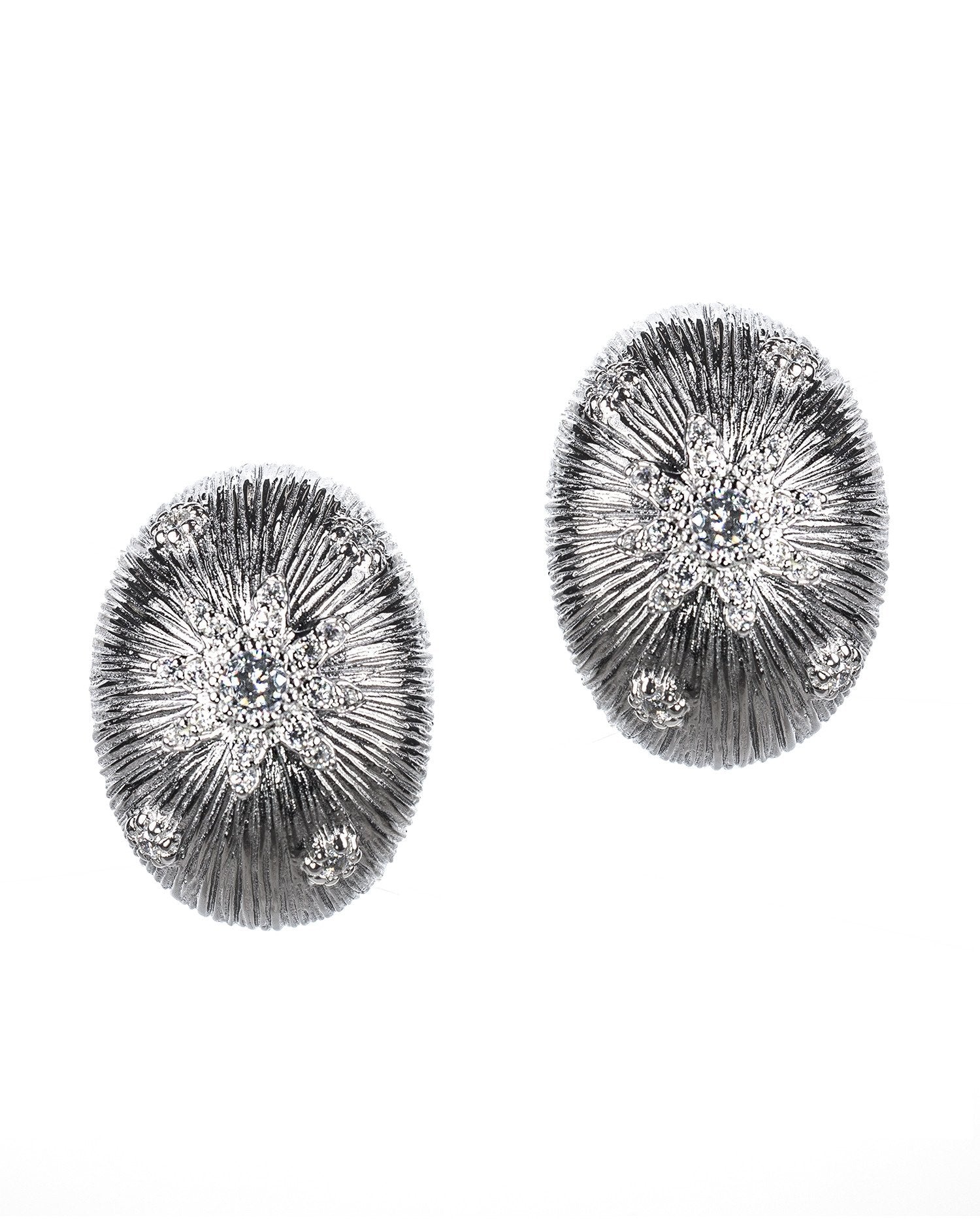 Oval clip button style earring in the traditional scratched "mortelato" finish. This design features a star pattern hand set with diamond simulants.