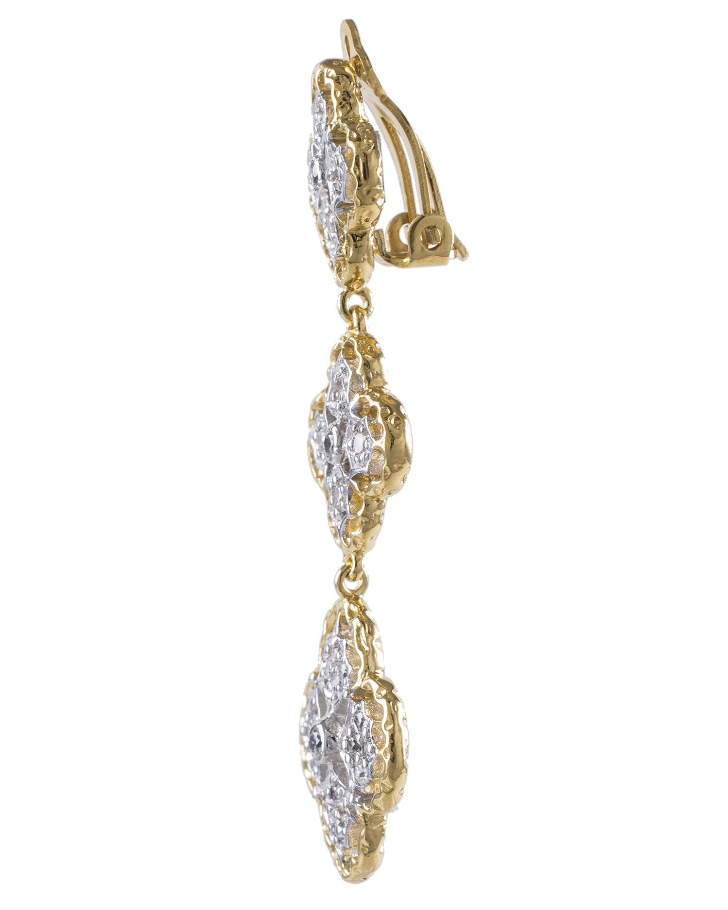 Elegant linear clip earring featuring three graduated pave Romantic Lace Clovers. The centers of each clover leaf are paved in hand cut and hand set cubic zirconia.